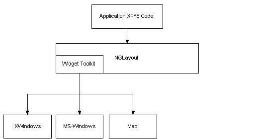 As new features were added to the product, this often meant the work had to be done separately for each platform. An advantage to this approach was that platform specific Look & Feel was guarenteed for for the set of common control that existed across platform. It may or may not have been guarenteed for customed widgets developed for each platform. NGLayout is fully based on XPCOM and all implementation exists behind a set of public interfaces. In NGLayout all platform specific code is contained in the Widget and GFX libraries. The GFX library is responsible for graphics and rendering primitives. The Widget library encompasses all windowing and GUI components necessary for creating HTML forms and the GUI interface on given platform. This approach has many advantages: