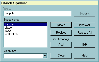 "Word" editbox. This will be the text to use to replace a misspelled word. |