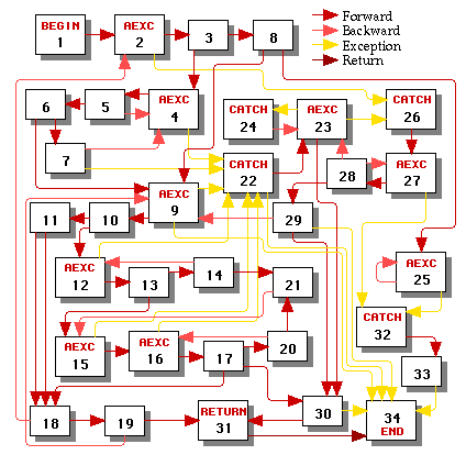 The aexc node C3 must have at least one outgoing exception edge for handling asynchronous exceptions. We create such edges (shown exiting from the right side of node C3) as appropriate.