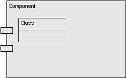 NotationThe symbol for a component is the same as specified in UML, namely a rectangle with two smaller rectangles attached along the left edge. The name of the component is entered at the top left. Interfaces should be attached along the top or right edge (see Interfaces section). A component symbol may contain classes and objects as well as miscellaneous other symbols representing registry information and certain component implementation details.