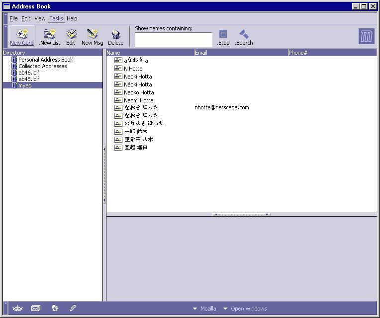 - Address Book stores data in any charset, and sorts and displays
