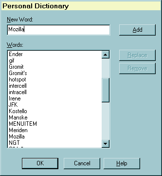 "Word" editbox. This will be the text to use to replace a misspelled word. |