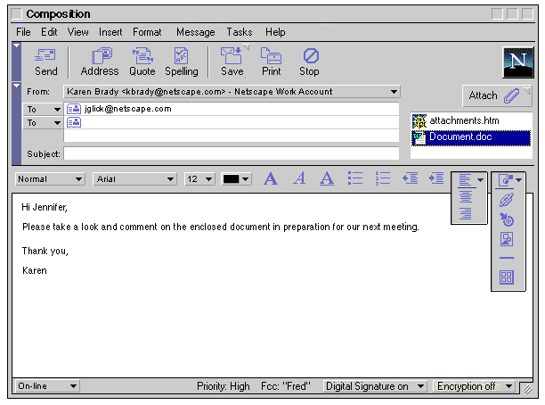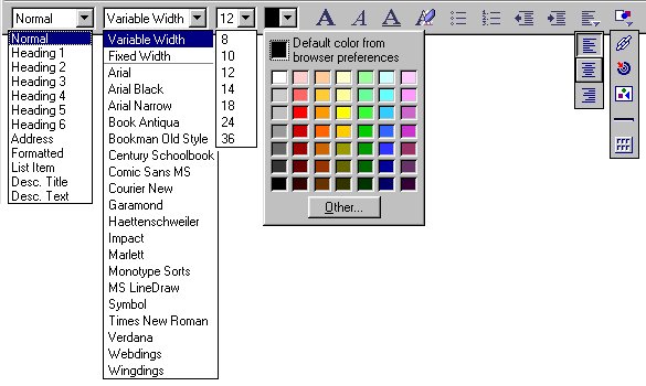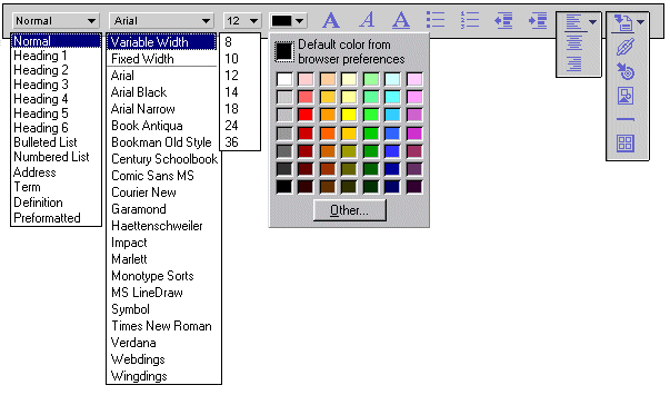 The Ender Toolbar component is an important part of the Message Compose window. It is important that this toolbar not be overwhelming with features, but be clear and provide easy access to the most commonly used HTML editing features.
