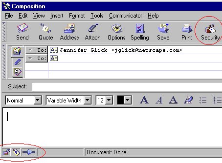 - Once users have the security features set up, they can use the drop down menus to access the different security features on a per message basis (turn encryption on/off, use different certificates).