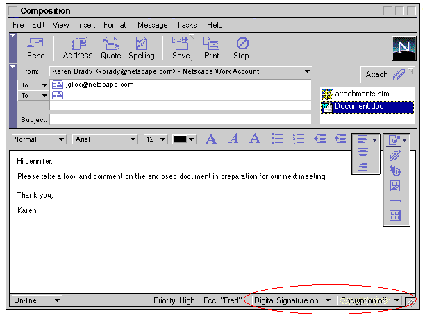 - Commercial builds will always show the security features menus (digital signature and encryption). Users can use the drop down security menus to access information about each feature, set up these features, or download these features if they currently are not included in their version of Messenger.