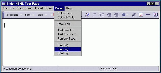The nsJSTxnLog class implements the nsITransactionListener interface. When logging is started, we add nsJSTxnLog as a listener to the editor's transaction manager so that it gets notified whenever a transaction is executed, undone, or redone. nsJSTxnLog's main purpose is to write out JavaScript comments that describe the transaction being executed. Since one editor method call can result in several transactions being executed, these comments can aid engineers in seeing what transactions are being executed, and identifying which transaction is causing a specific problem.