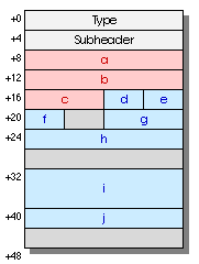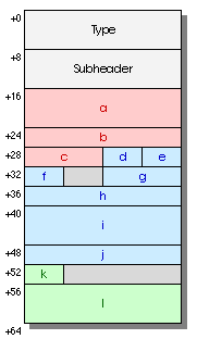 In order to save space and improve cache locality we may wish to change our field allocation to use the first-fit strategy to place each field in an object. The field placement would be the same as above except that the fields would no longer be required to be in the same order as in the Java source file. Using this strategy on class C on a 32-bit address machine would yield the layout in Figure 4. Note that field j now fills the hole in front of field i, and field k fills the hole in front of field g.