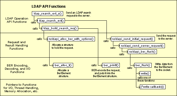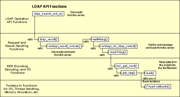 The following diagrams illustrate how ldap_search_ext_s() calls