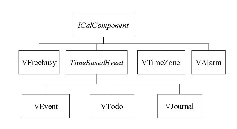 There are three levels of hierarchy in iCalendar, the calendar level, the