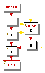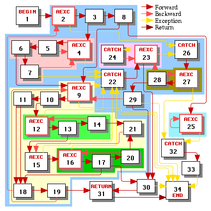 The aexc node C3 must have at least one outgoing exception edge for handling asynchronous exceptions. We create such edges (shown exiting from the right side of node C3) as appropriate.