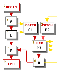 The aexc node C3 must have at least one outgoing exception edge for handling asynchronous exceptions. We create such edges (shown exiting from the right side of node C3) as appropriate.